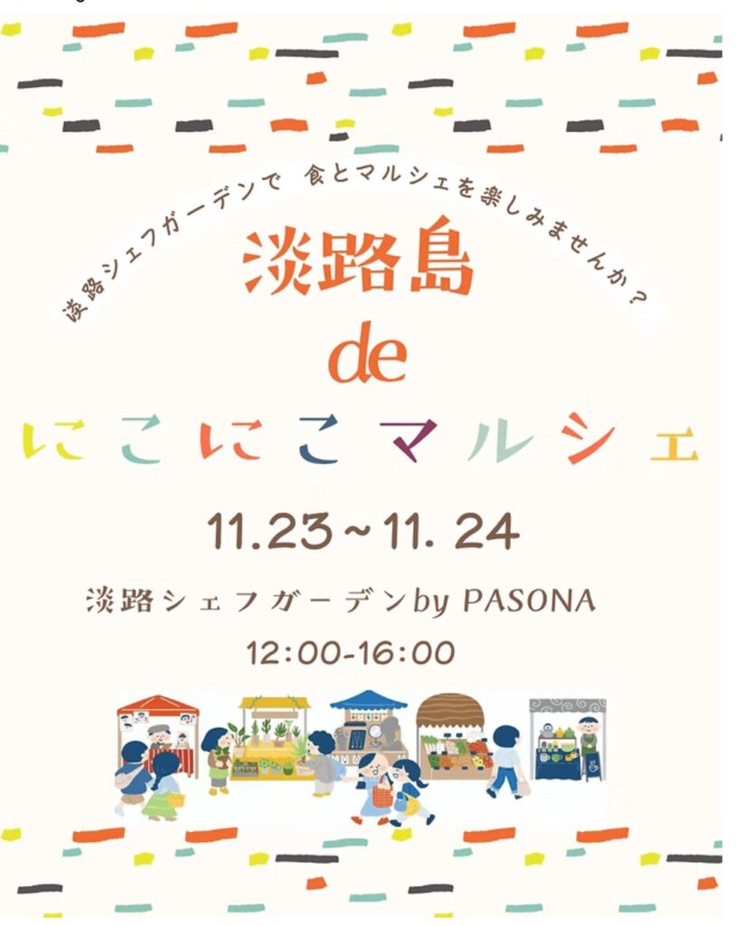 11月23日(土)・24日(日)は波乗亭から歩いていける「淡路シェフガーデン」では、第2回淡路島 de にこにこマルシェ秋の淡路シェフガーデンにて開催されます!海辺のロケーションにぴったりなアート作品や、淡路島の自然の恵みを感じるグルメなど、笑顔あふれる2日間をお楽しみください。