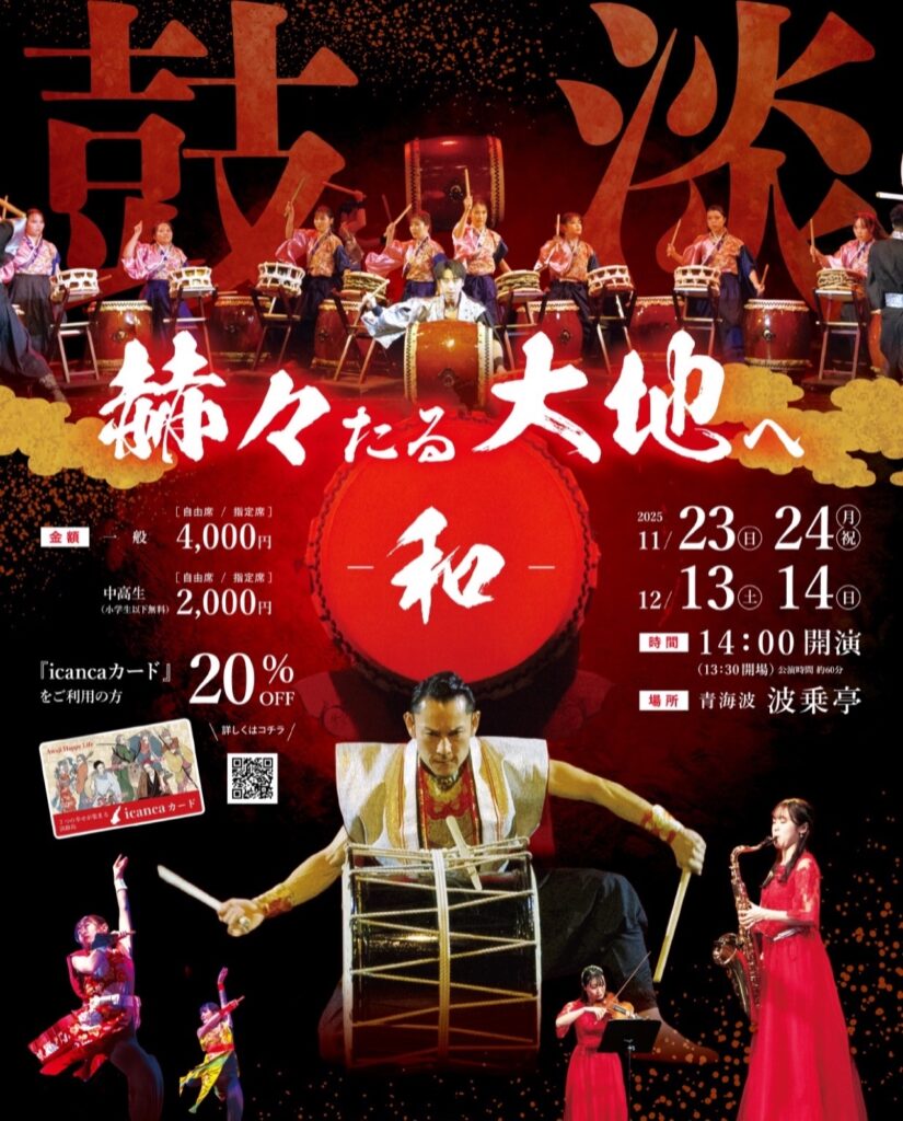 そしてそんな太鼓集団”鼓淡”のパフォーマンスが見れる機会が10月~12月までなんと毎月あります!✨