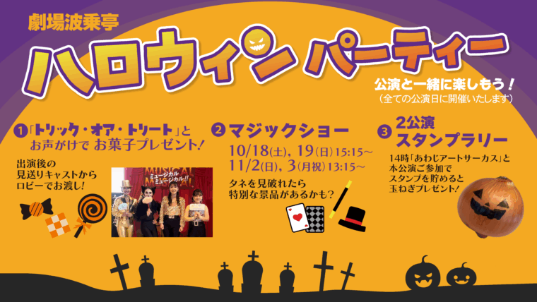 本公演に合わせ、劇場ロビーにて「ハロウィンパーティー」を開催!ハロウィン気分で一緒に盛り上がりましょう🎃
