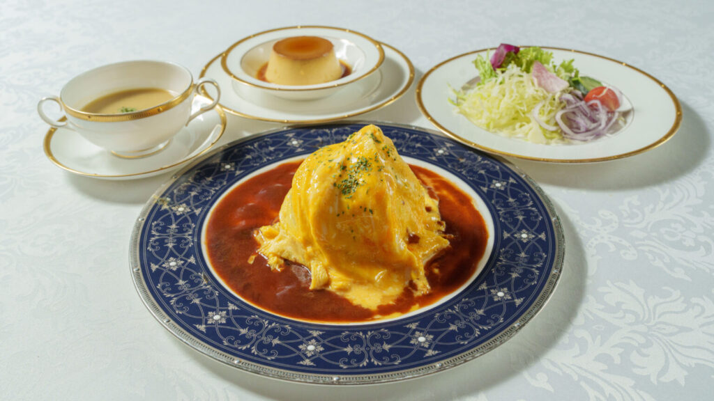 サラダ、スープ、メイン、甘味まで楽しめる、豪華絢爛な洋食レストラン。