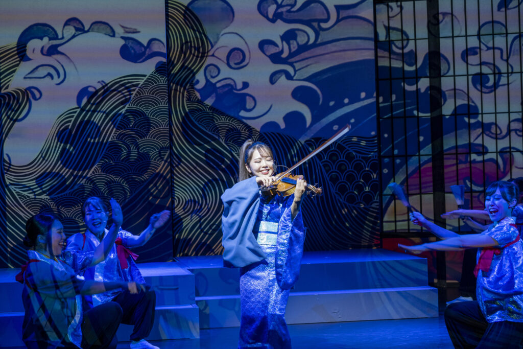 『舞い踊る郷の響き』夏公演は、北国の民謡が加わったことで後半に向けて一気に熱量が高まり、舞台上からの熱気が客席まで届く公演にパワーアップしています。喜連麻衣さん(ヴァイオリン)は、民謡の抑揚を音の「抜き」やビブラート幅、ポルタメントで表現する工夫を重ね、ロック調に生まれ変わった「ソーラン節」では毎回弓の毛が切れるほど全力で演奏。フルートの佐藤碧美さんとの二重奏「てぃんさぐぬ花」は、本番直前の稽古で急遽決定し、20分足らずで役割分担と構成を仕上げたという“阿吽の呼吸”のエピソードも。『舞い踊る郷の響き 夏公演』の現在地を、喜連麻衣さんのインタビューでお届けします。