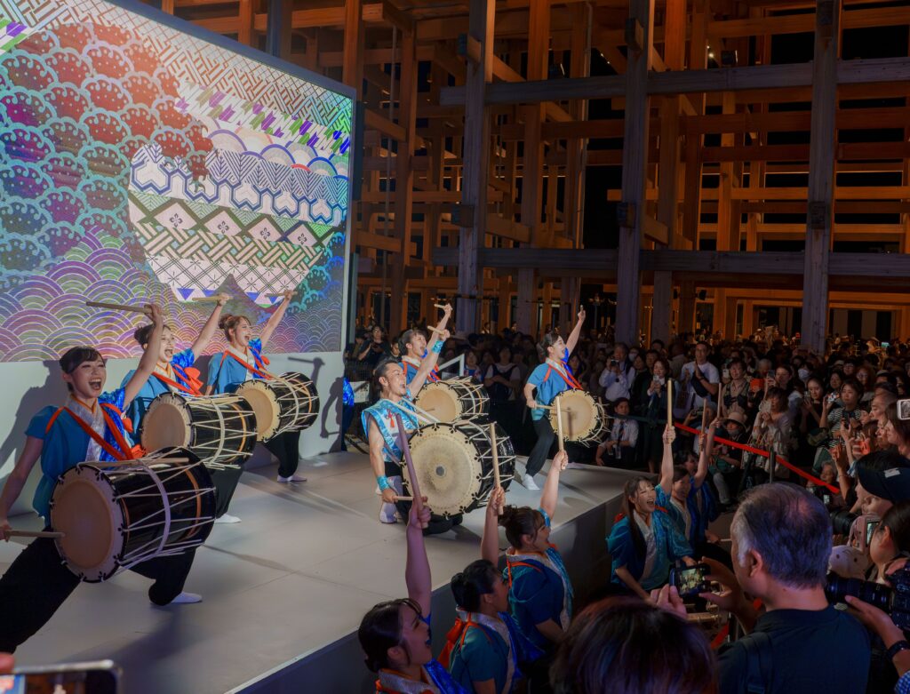 10月1日、『舞い踊る郷の響き』が大阪・関西万博 特別版として上演されました。会場は終始ヒートアップし、大屋根リング周辺まで立ち見が広がる盛況ぶり。太鼓・歌・ダンスが一体となる楽曲を凝縮した“万博仕様”で、客席からは手拍子も起こり、一体感あふれる舞台となりました。