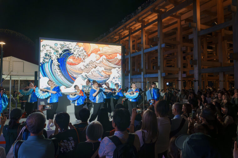 10月1日、『舞い踊る郷の響き』が大阪・関西万博 特別版として上演されました。会場は終始ヒートアップし、大屋根リング周辺まで立ち見が広がる盛況ぶり。太鼓・歌・ダンスが一体となる楽曲を凝縮した“万博仕様”で、客席からは手拍子も起こり、一体感あふれる舞台となりました。