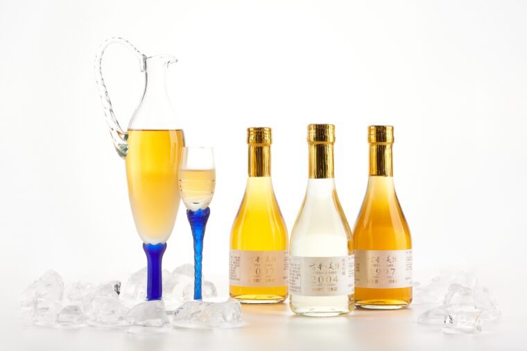 青海波「青の舎」「海の舎」では、20歳を祝う特別プランをご注文いただきましたお客様限定で、時を重ねるごとに静かにその深みを増してゆく古酒ミニボトルをプレゼントいたします。
