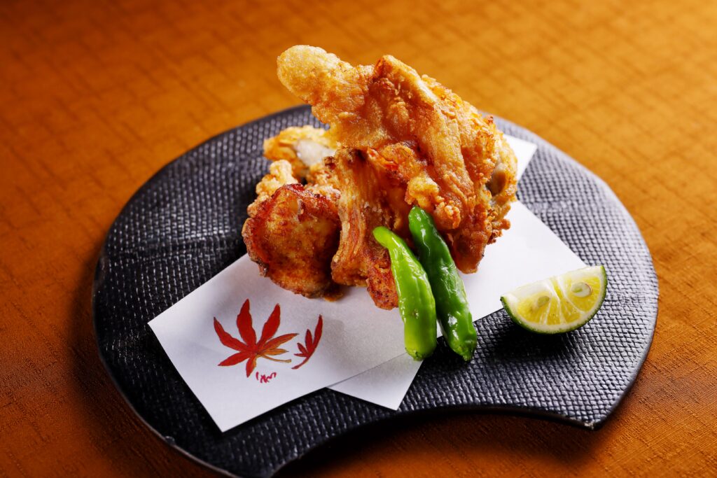 ふぐの旨みをぎゅっと閉じ込めた、冬の醍醐味です。カリッとした衣の中から溢れ出す、ジューシーで弾力のある身。骨の周りにある最も濃厚な旨みまで、余さず味わっていただけます。
