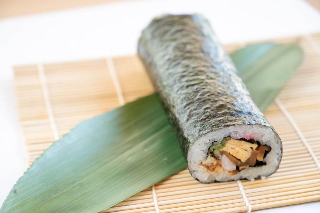 食感のアクセント、7種の具材 歯ごたえの良いきゅうり、じっくりと味を染み込ませた椎茸、彩りを添える田麩など、計7種の具材をバランスよく配置。どの断面を切り取っても美しく、一口ごとに異なる食感のコントラストが楽しめます。