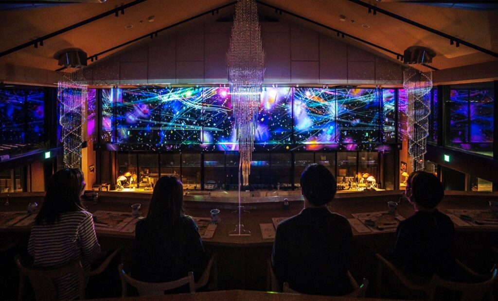 これら2つのプログラムは、お食事の時間の中で、その時々の趣に合わせて上映されます。決まった時間に見るショーではなく、お食事の背景として自然に流れる映像は、訪れるたびに異なる表情を見せてくれます。こうした「一期一会」の演出も、ディナーの楽しみのひとつです。