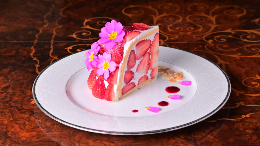 ケーキには、淡路島の穏やかな気候に育まれた大粒の苺を惜しみなく使用し、どこから食べても苺と出会える贅沢な一品です。