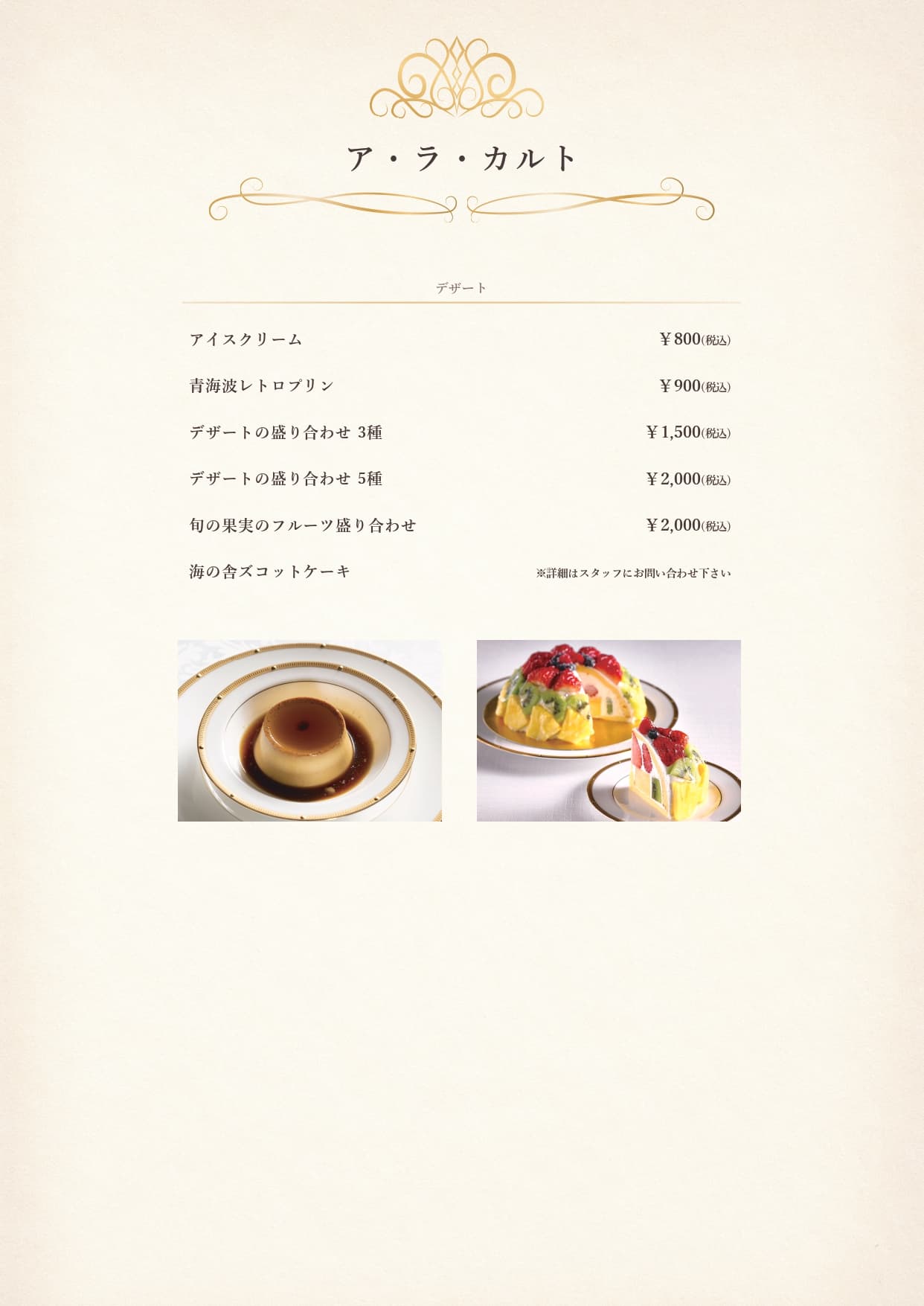近海で獲れた天然真鯛や淡路牛、島野菜など淡路の贅沢な食材をふんだんに使用した自慢のコース料理です。