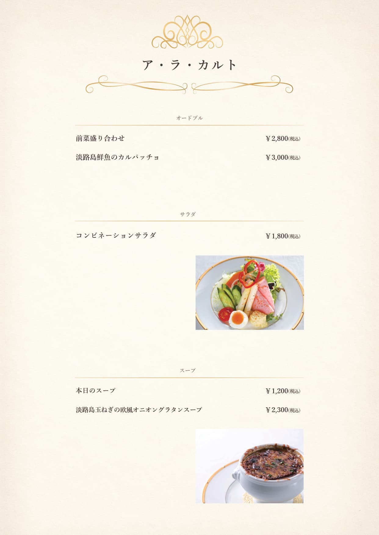 冬の淡路島が誇る旬の食材を、華やかに、そして優雅に。 カリフラワーや足赤海老、鰆、淡路牛…それぞれの素材が持つ味わいを最大限に引き出し、 心も温まる全7品のコースに仕立てました。